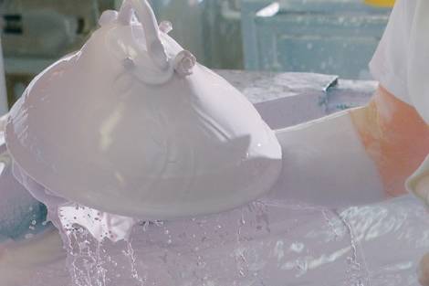 Az öntés technológiája: a gipszforma elszívja a massza jelentős víztartalmát, a szilárd szemcsék a forma falára tapadnak, így egy, az öntőformának megfelelő tárgy nyerhető.